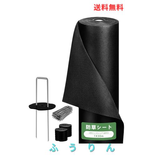 [YdGalxeon] 防草シート 厚手 除草シート 1m×30m 不織布 10年耐久 ぼうそうシート Uピン杭40本と黒丸40枚付き 高透水・高耐久・高密度 U