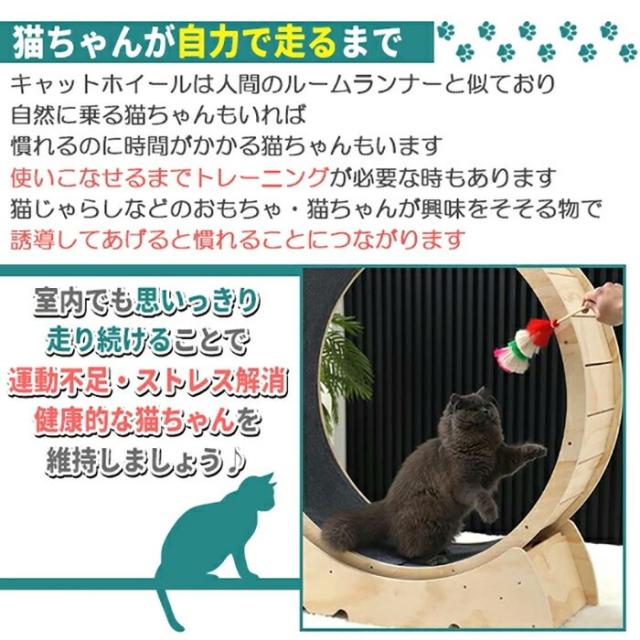 キャットホイールは人間で言うルームランナーと似ており、自然に乗る猫ちゃんもいれば慣れるのに時間がかかる猫ちゃんもいます使いこなすまでトレーニングが必要な時もあります。
