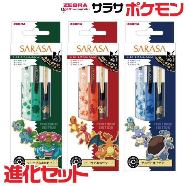 ゼブラ サラサ ポケモンシリーズ 進化セット ポケットモンスター フシギダネ ヒトカゲ ゼニガメ サラサクリップ サラサグランド サラサナノ 0.5 0.38 0.5mm 限定 ポケットモンスター ポケモン ペン ジェルボールペン プレゼント キャラクター