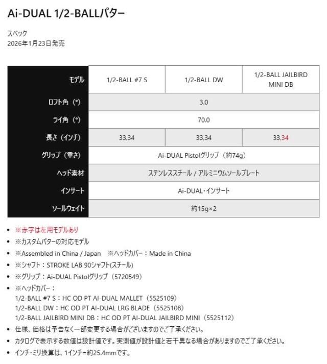 オデッセイ Ai-DUAL 1/2-BALL #7 S パター STROKE LAB 90シャフト 2026年モデル ODYSSEY GOLF[日本仕様][ODYSSEY][エーアイデュアル]