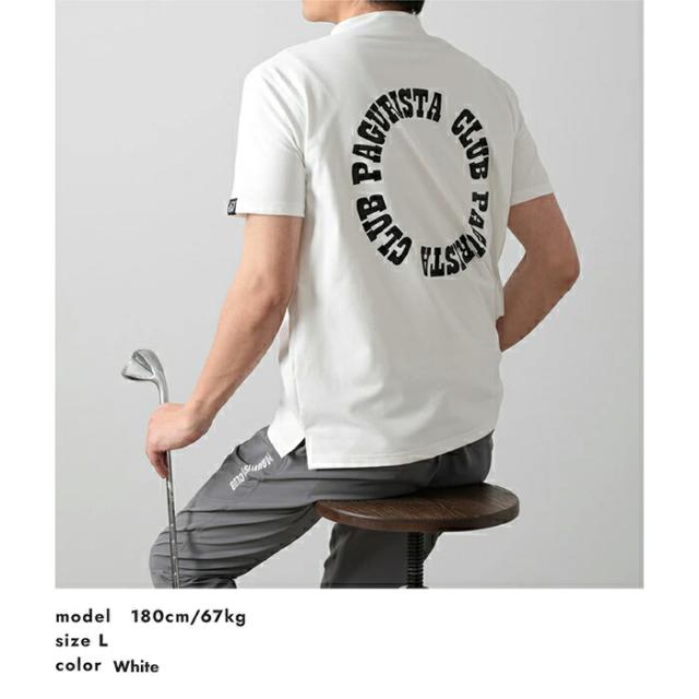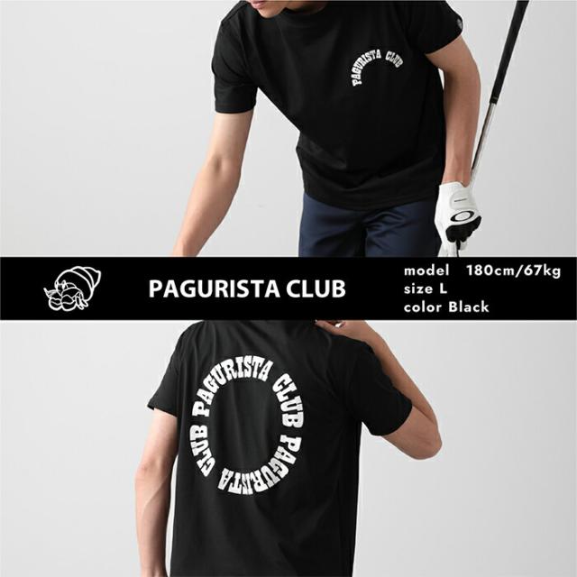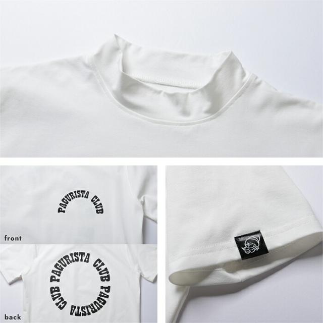 PAGURISTA CLUB 半袖 モックネック シャツ 吸水速乾 UVカット ストレッチ 半袖 サークルロゴ バックプリント ブロック体 トップス Tシャツ 春夏 おしゃれ ブランド パグリスタ