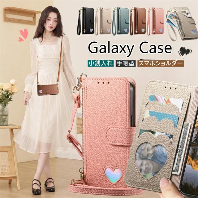 Galaxy A55 5G SCG22 ケース オーロラのハート GalaxyS24 S25 S23FE S21 ケース 手帳型 ショルダー GalaxyA55 A25 A36 S26 S22 Ultra ケース カード収納 かわいい おしゃれ 耐衝撃吸収 ギャラクシー a55 galaxy a55 ケース 手帳ケース ストラップ付き スマホケース 財布付き