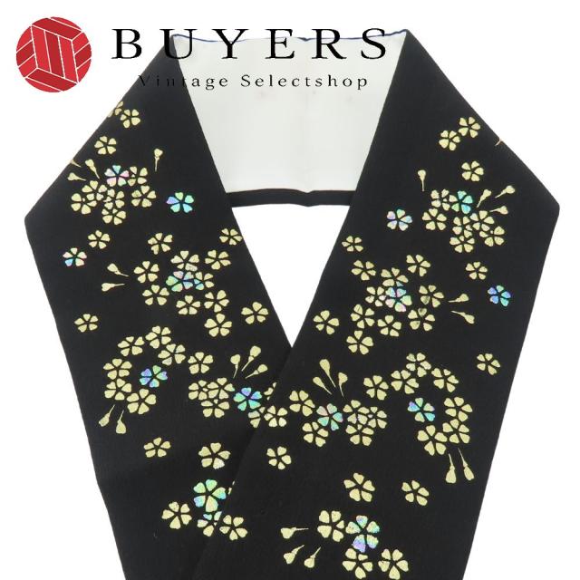 中古 重ね襟 伊達衿 箔 ラメ 正絹 ブラック ゴールド 成人式 卒業式 お祝い 和装 呉服 和服 きもの レディース 女性