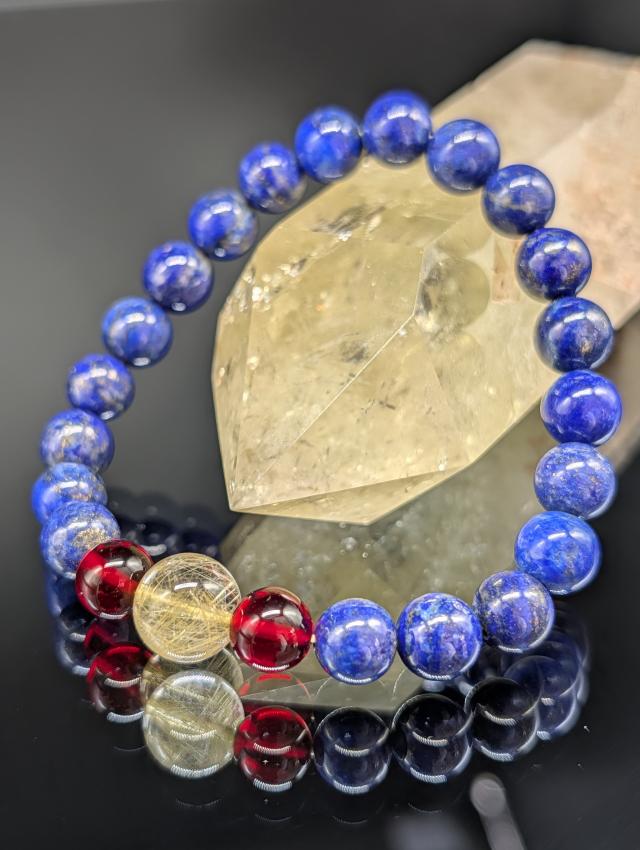 持ち主に【強運・幸運】を引き寄せるラピスラズリと、【金銭運・成功・財の運】を引き寄せるゴールドルチルクォーツ。