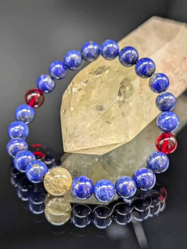 持ち主に【強運・幸運】を引き寄せるラピスラズリと、【金銭運・成功・財の運】を引き寄せるゴールドルチルクォーツ。