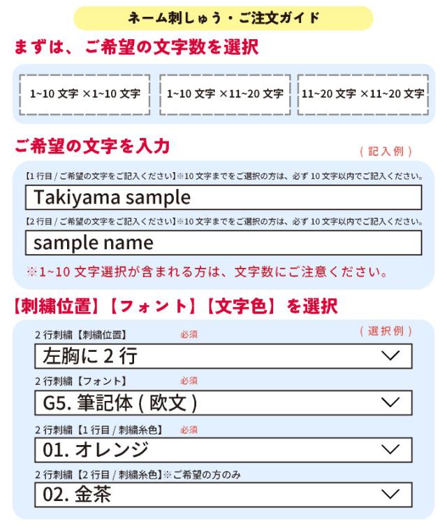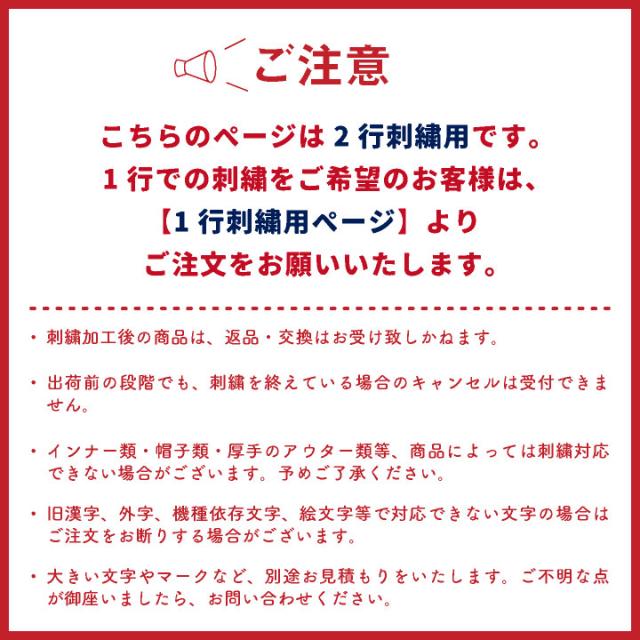 [ネーム刺繍・2行] ネーム刺繍 刺繍 刺しゅう 企業名 会社名 店名 チーム名 名前 名入れ チームウェア オリジナル プレゼント 贈り物 記念日 名入れ 母の日 父の日 敬老の日 誕生日 安い リーズナブル op-name-2line