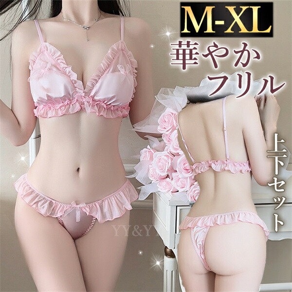 セクシーランジェリー 大きいサイズ 超過激 ブラセット 上下セット 可愛い ピンク ショーツ ランジェリー レディース おしゃれ ランジェリー 下着 上下セット フリル レース ブラセット Tバック 谷間 リボン シアー XL