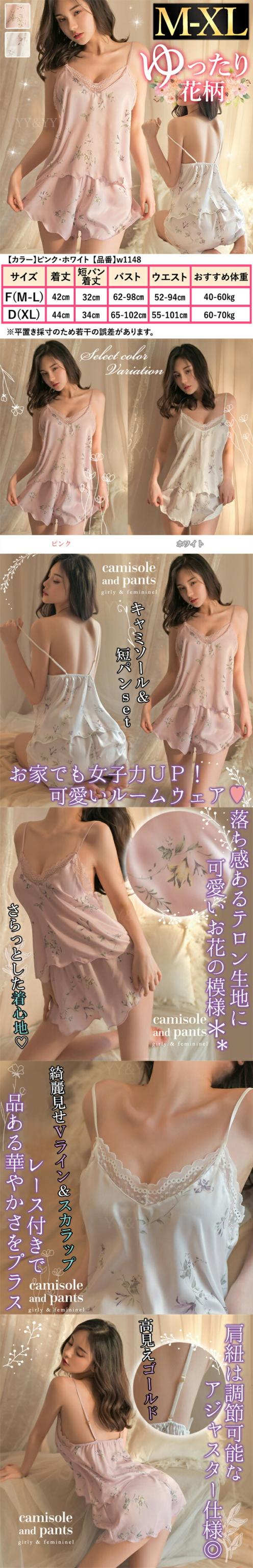 小花柄をプリントした可愛いキャミソールとショートパンツのセットです。一枚でお洒落可愛い!おすすめ商品です。