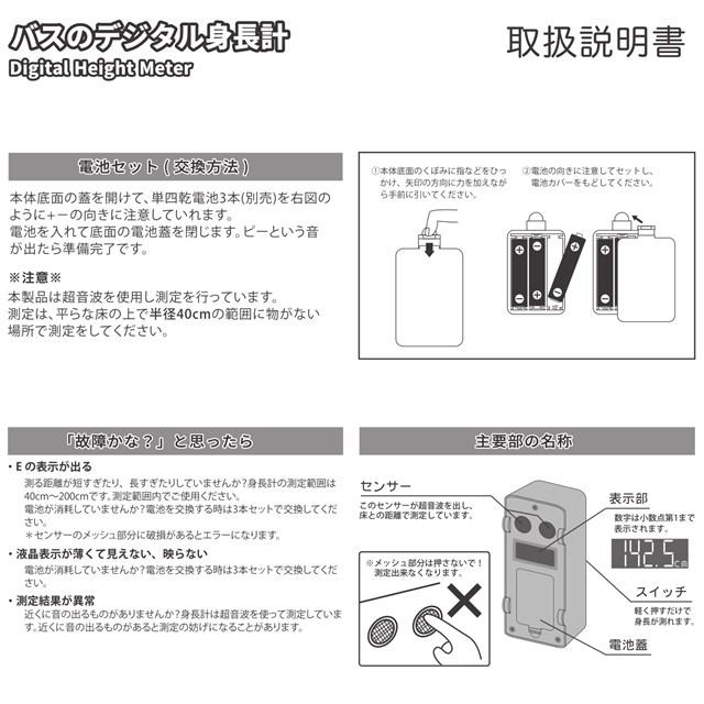 ボタンを押して3秒待つだけで、身長がすぐにわかります。
