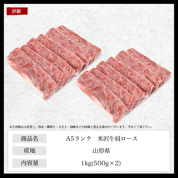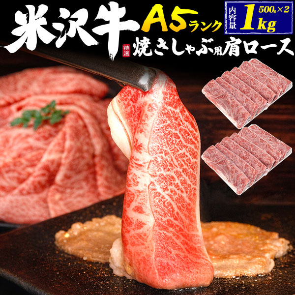 A5ランク 米沢牛 焼きしゃぶ用肩ロース 1kg(500g×2)