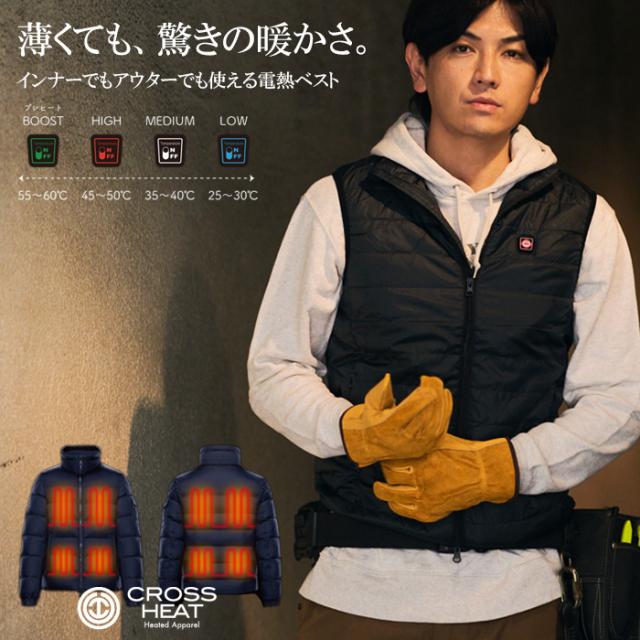 電熱ベスト ヒーターベスト バッテリーセット 大容量20000mAh 背中 お腹 CROSS HEAT R00 ヒーティングシステム 防寒ベスト 冬用 作業着 アウトドア バイク 通勤通学 男女兼用 ユニセックス
