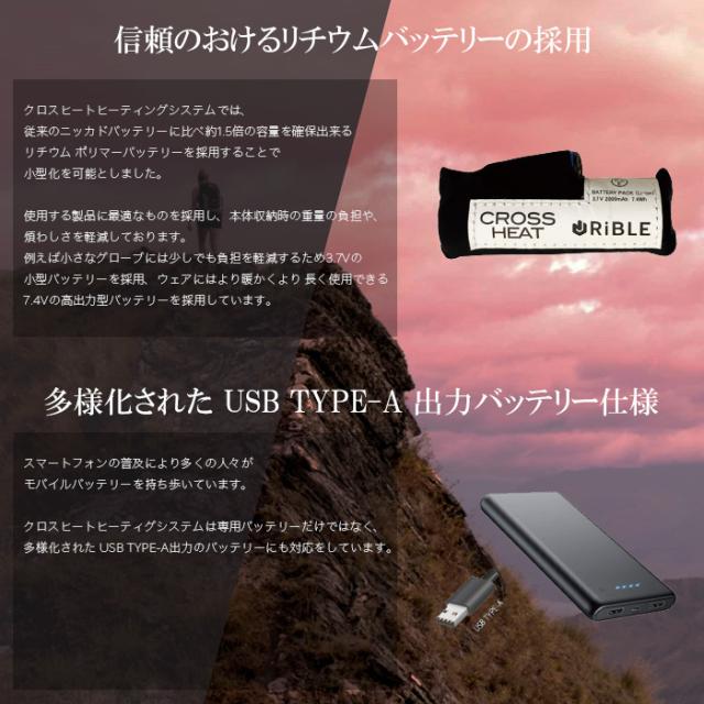 USB接続式のバッテリーに対応し、最大10時間の連続発熱を実現。