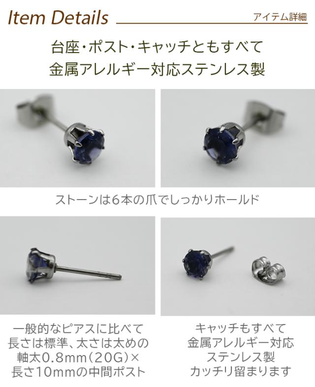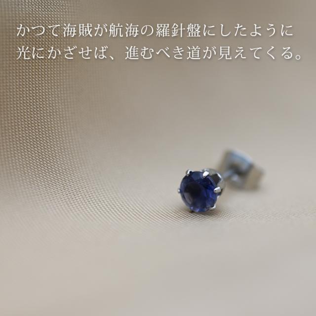 ピアス 金属アレルギー対応 アイオライト 5mm 宝石質 サージカルステンレス つけっぱなし セカンドピアス 品質保証書 ギフト 3月 9月 誕生石 青 紫 天然石 レディース メンズ 片耳用