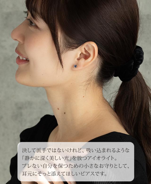 | ピアス 金属アレルギー対応 アイオライト 5mm 宝石質サージカルステンレス つけっぱなし セカンドピアス 3月 9月 誕生石 青 紫 天然石 レディース メンズ 片耳用 |