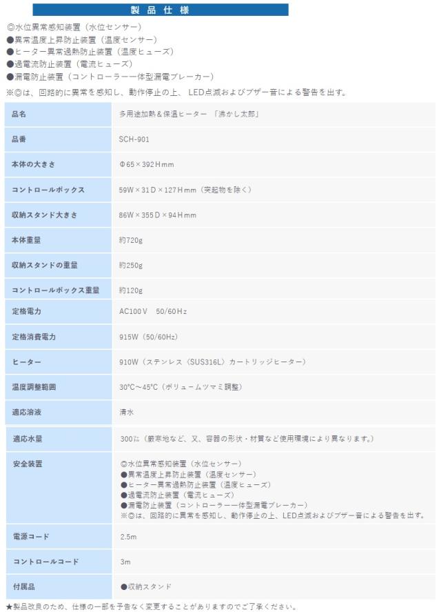 クマガイ SCH-901 沸かし太郎 910W コントロールコード3.0m 湯沸かしヒーター SUNART サンアート 在庫
