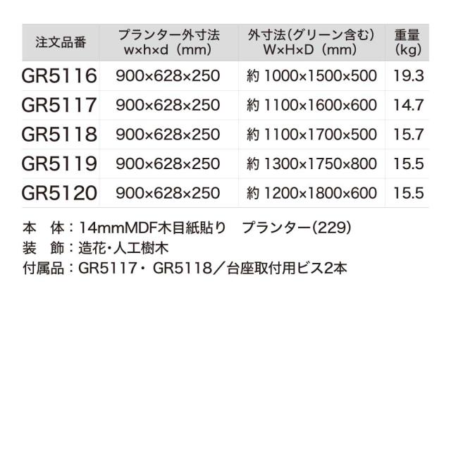 ※グリーンは造花の為、屋内設置でも直射日光や高温により、変色劣化する場合がございます。