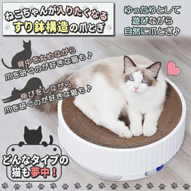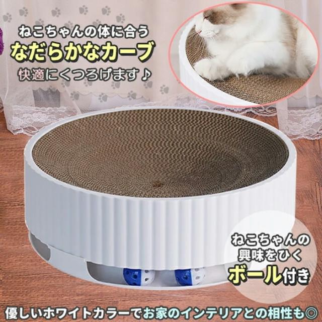 猫ちゃんの体に合うなだらかなカーブ!快適でくつろげる、すり鉢構造の猫爪とぎ。優しい白色を使い、お家のインテリアにも完璧に調和します。原料は100%紙、品質の良いダンボールを使用しています、爪とぎ後のとぎカスも少ないです。安心のPP抗菌材料を採用、無害無臭。猫ちゃんが興味を持つようなボールが付いております♪