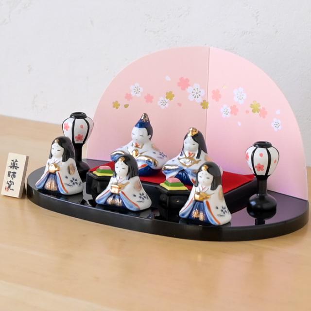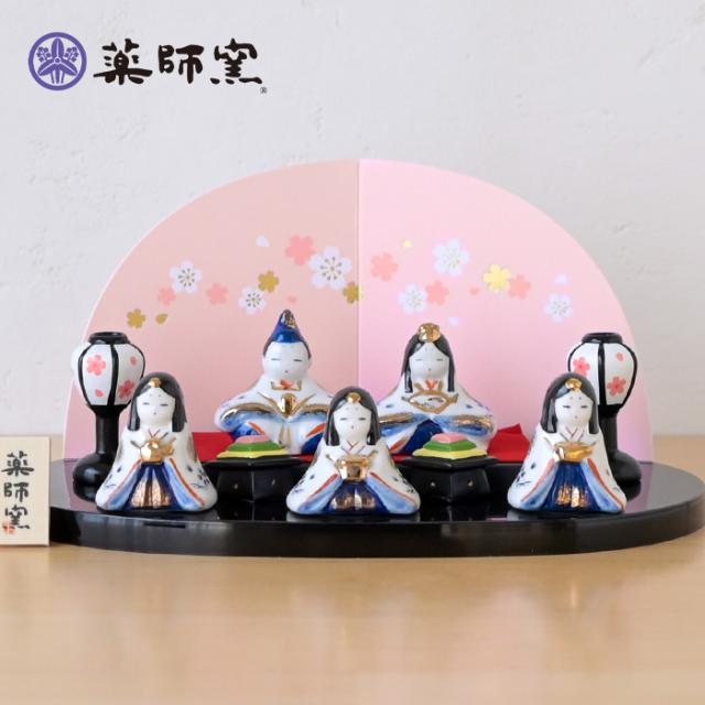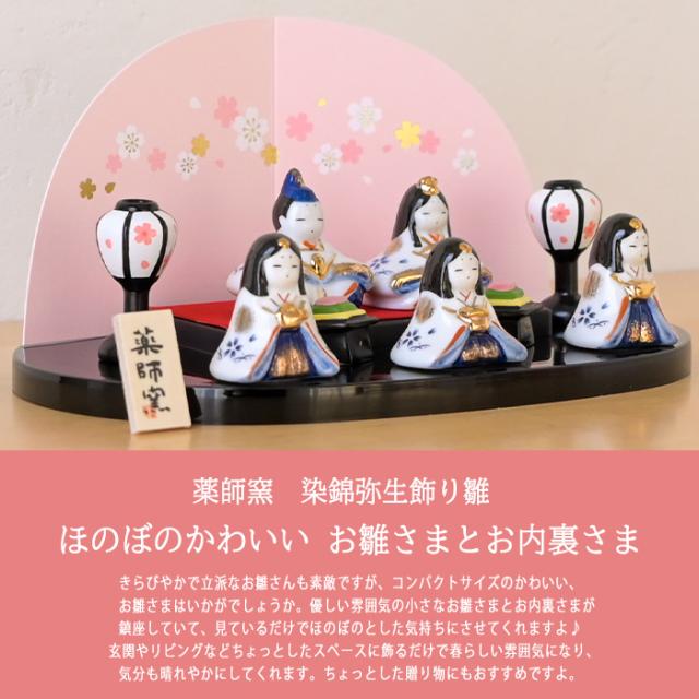 薬師窯 染錦弥生飾り雛(平飾り)2663 雛人形 コンパクト モダン ひな人形 おしゃれ かわいい 陶器 雛祭り 玄関 マンション 縁起 出産祝 誕生日 プレゼント 伝統工芸・陶器の和遊感