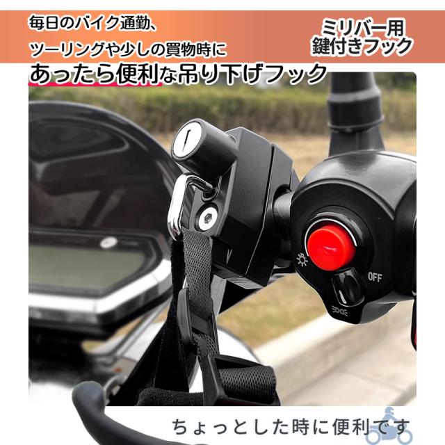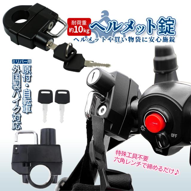 ヘルメットロック バイク 自転車 ヘルメット ロック 盗難防止 ミリバー用 22-25mm 吊り下げ フック 荷物 ハンドル バー 錠 鍵 カギ ロードバイク 防水 METTRON 送料無料