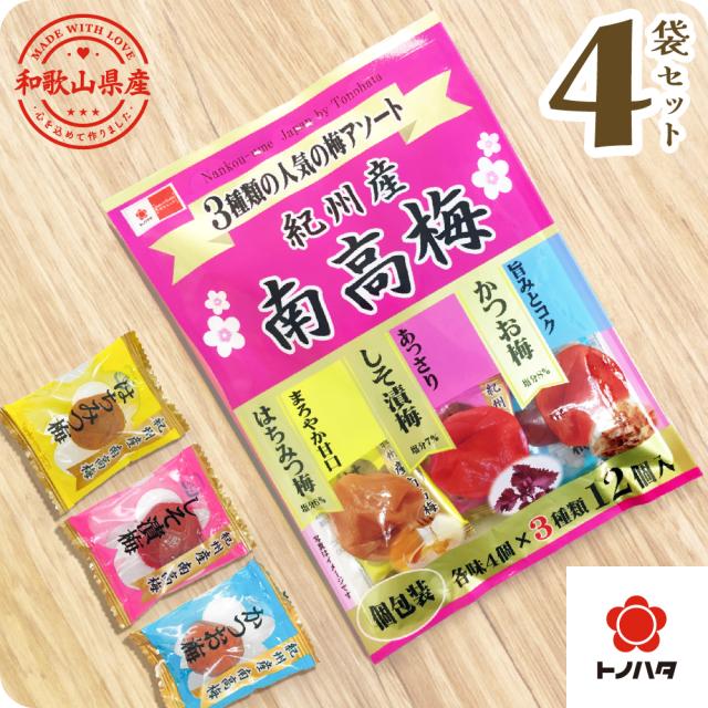 梅干し 個包装 紀州南高梅 12粒入×4袋セット ご飯のお供 お弁当 おにぎり 国産 3種 時短 食品 おすすめ 人気 【トノハタ公式】| 低塩 天然塩 天日塩 南高梅 和歌山 熟成 お取り寄せ グルメ 食べ物 健康 プチギフト プチ贅沢