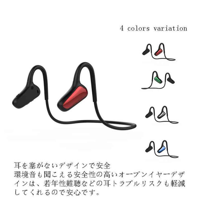 | 耳を塞がないデザインで安全 環境音も聞こえる安全性の高いオープンイヤーデザインは、若年性難聴などの耳トラブルリスクも軽減してくれるので安心です。 周りの音も聞こえて安心 ジョギング、ランニング、サイクリング、自転車、運動時、家事、料理中、作業場など周りの音も聞こえるので安全です。 超軽量&フレキシブル 本体重量約28gと超軽量で耳への負担がなく、長時間の装着も快適。優れた柔軟性と耐久性を備えたチタン合金を採用しています。 防水機能 雨が降っても水が入り込まない防水設計なので、外でのお仕事やアウトドアでも安心して使えます。 いつでも、どこでも、リスニング 自分の声をしっかり拾い、周囲からの雑音を低減してくれます。 スタイリッシュで優れた装着感 曲線のデザインが美しいヘッドセットなので、つけていることを意識させず、耳に圧迫感や閉塞感がないので、耳がムレることもありません。 ご注意 通話中ラグが発生する場合がございます。 通話中に声が聞き取りにくい場合には音量を大きくしてご使用ください。通常にイヤホンに比べて構造上音漏れする場合もございます。 | |
