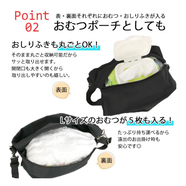 おむつポーチ おしりふきポーチ ショルダー 斜めがけ 2way コンパクト 軽量 大人 ベビー 赤ちゃん 育児グッズ 消臭 抗菌 防臭 撥水 簡易防水 ママバッグ サブバッグ ミニショルダーバッグ 出産祝い ブランド ママカル 黒