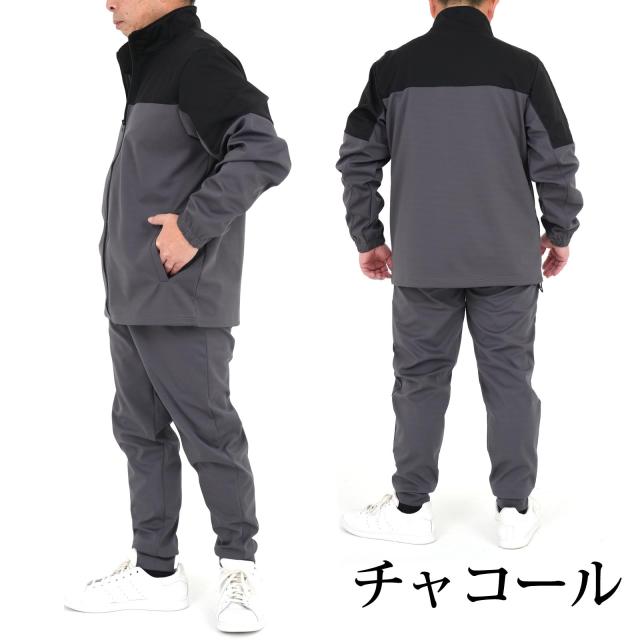 ジャージ 上下 メンズ ストレッチ やわらか素材 ユニフォーム チームウェア アウトドア トレーニングウェア ジョガーパンツ ファスナー付きポケット【送料無料】 M L LL グレー チャコール ネイビー