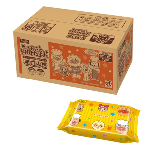 手口ふき 60枚×12個組 アンパンマン ( 純水99% 日本製 ウェットティッシュ ウェットシート 手口拭き おてふき お手拭き 弱酸性 水99 消耗品 3個パック かわいい 赤ちゃん ベビー 無添加 敏感肌 保湿 出産準備 お出かけ )