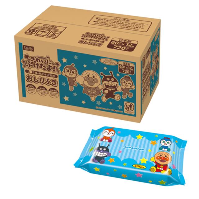 おしりふき 60枚×12個組 アンパンマン ( 純水99% 日本製 おしり拭き ウェットシート ウェットティッシュ 厚手 低刺激 水99 消耗品 3個パック かわいい 赤ちゃん ベビー 無添加 敏感肌 保湿 出産準備 お出かけ )