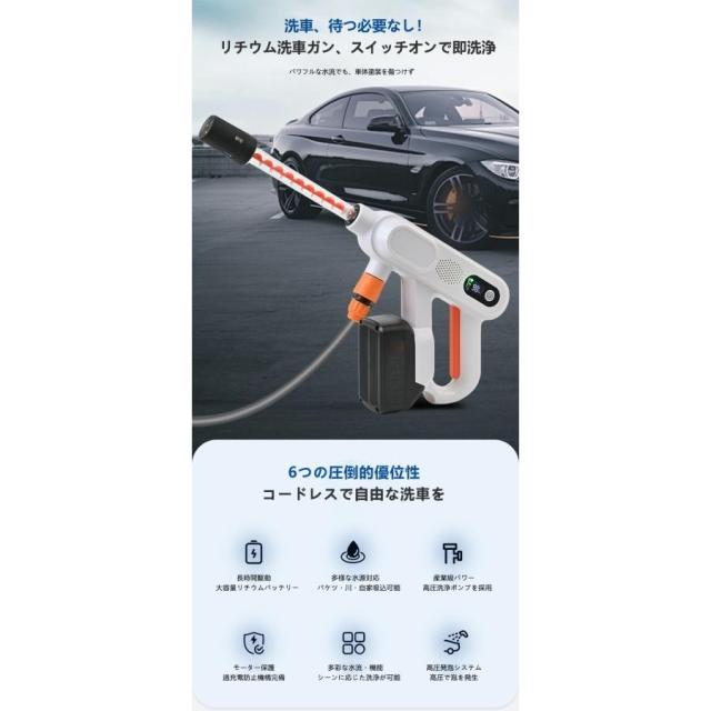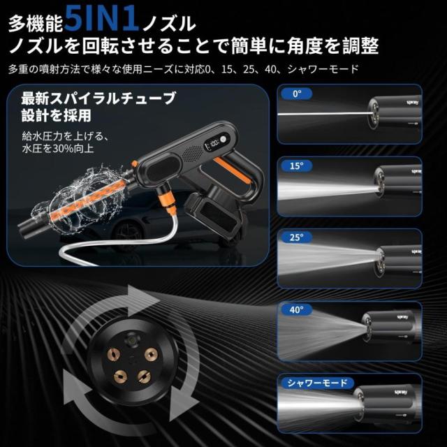 高圧洗浄機 コードレス 充電式 小型 ブラシレスモータ搭載 コンパクト洗浄機 5in1多機能ノズル 強力噴射 軽量 段階調整 LED残量表示 大掃除 家庭用