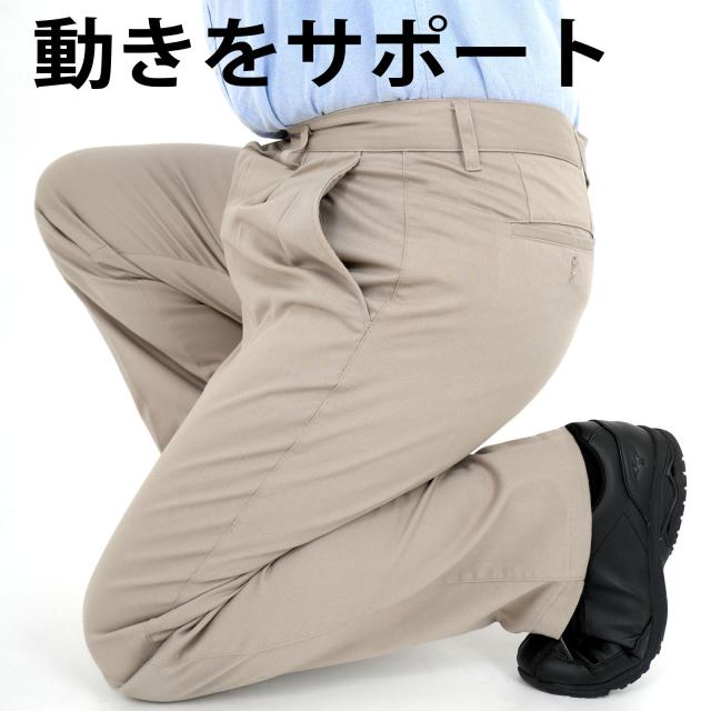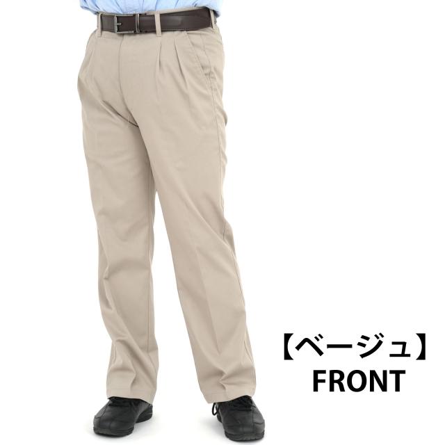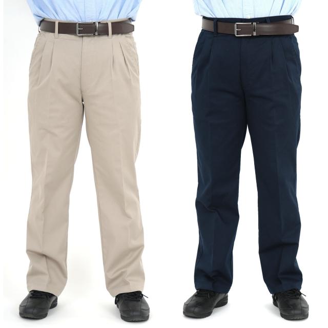 股下短め加工済のツータックチノパン ストレッチ、伸縮性がありゆったりとした履き心地、作業も楽々 チノパン カジュアルパンツ ツータックパンツ ストレッチ ワイドなシルエット 綿 綿混 洗濯 丸洗い 小さいサイズ 大きいサイズ 裾上げ済 メンズ シニア 作業着 ユニフォーム