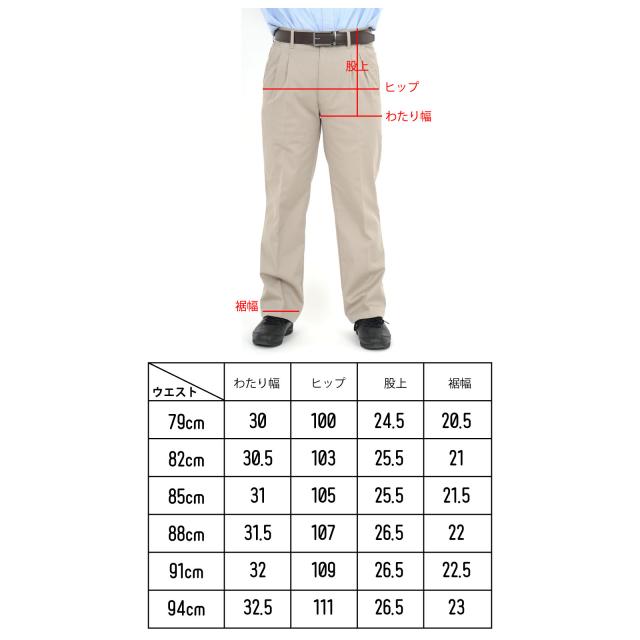 作業着チノパン ツータック ストレッチ 楽々シルエット 裾上げ済
