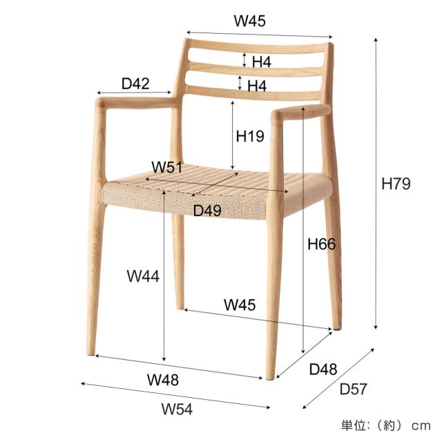 form ダイニングチェア 座面高44cm 肘掛け付き ペーパーコード アルネ ( チェア 木製 天然木 アッシュ ダイニング イス 椅子 食卓椅子 肘掛け 完成品 いす 食卓 リビング リビングチェア シンプル 軽量 アームチェア )