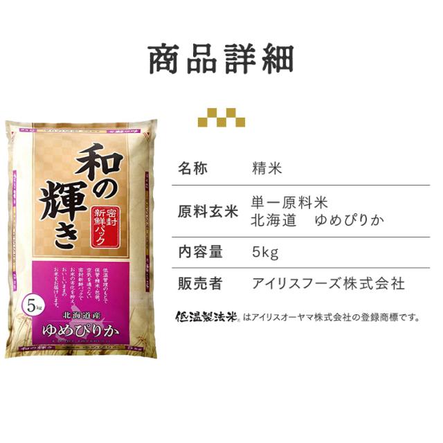 米 令和 7年産 5kg 北海道産 ゆめぴりか お米 5キロ 和の輝き ほどよい粘りと甘み やわらかめの食感 密封新鮮パック 脱酸素剤 おいしさ長持ち製法 低温製法米 白米 精米 コメ ご飯 ごはん ストック アイリスオーヤマ アイリスフーズ *