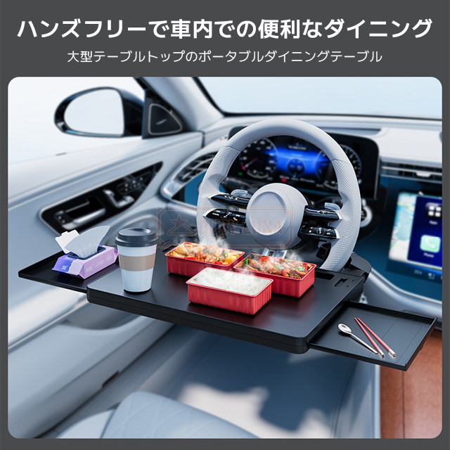 ハンドルテーブル 車用テーブル 運転席 仕事 食事 勉強 多機能 机 両側にスライド式 コンパクト収納 省スペース 多機能テーブル 高耐荷重 ABS素材 滑り止め付き 安定設置 クランプ式 傷防止 80%拡張可能 取り付けが簡単 車用トレー 耐久性 カー用品 汎用 食事タブレット 車載テーブル ハンドルデスク 車中テーブル ドライブテーブル 運転席テーブル ノートパソコンスタンド 車用デスク 車内作業 テレワーク 車中ワーク 車内オフィス 車中食事 車内ランチ 車載トレー 車載デスク 角度調整可能 スライド式サイドテーブル 拡張テーブル 軽量 お手入れ簡単 ビジネス用 長距離ドライブ モバイルワーカー タブレットスタンド スマホ置き 書類置き 車内読書 車中勉強 車内エンタメ