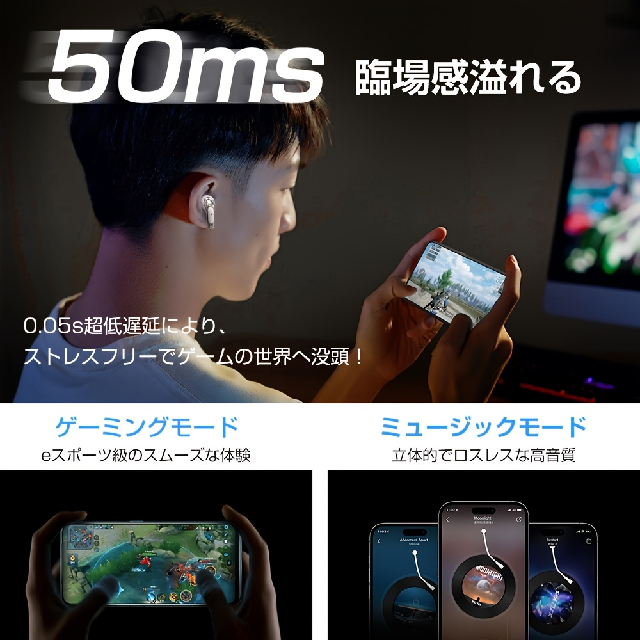 ワイヤレスイヤホン Bluetooth5.4 ハイファイ ステレオ 重低音 ENC ノイズキャンセリング LED 表示 タッチ操作 Type-C 充電 長時間再生 低遅延 片耳/両耳 VR ゲーム 音楽 通話 通勤 運動 仕事 小型 軽量 コンパクト 最新 おすすめ 人気 ブラック