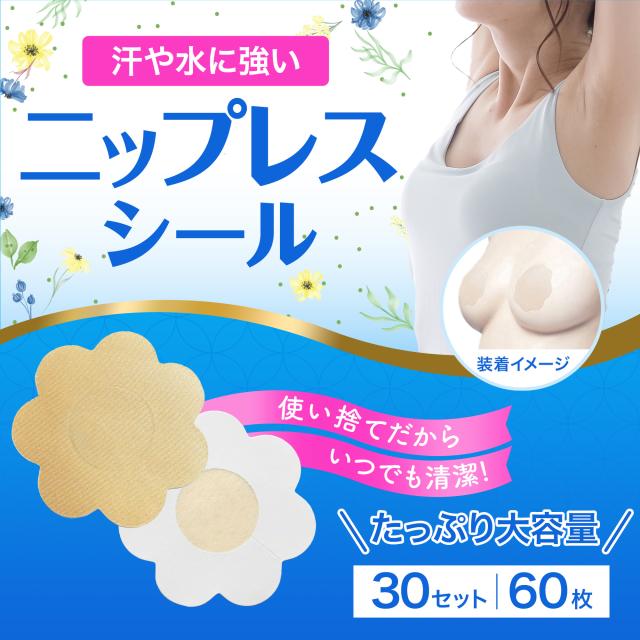 【ブラの締め付けから解放】 ニップレス シール 30組60枚 使い捨て 汗に強い スポーツ や 水着用 にもおすすめ 大きめ レディース 女性用 ニプレス 花型 透けない 響かない ベージュ 大容量