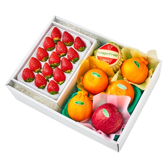| 内容量 | まりひめいちご15粒(和歌山県産)×1、デコポン(佐賀県または熊本県産)、せとか(愛媛県または佐賀県産)×各2、りんご(青森県または長野県産)、グレープフルーツ(アメリカ、メキシコまたはオーストラリア産)×各1 |