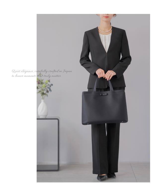 学校説明会・面接・願書提出など、大切な場面にふさわしい上品さと実用性を兼ね備えたお受験対応フォーマルトートバッグです。