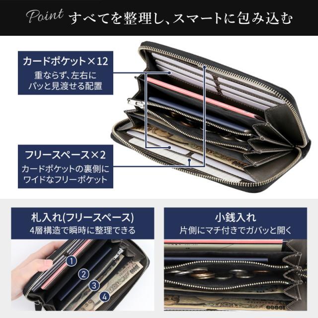 【仕様】札入れ(フリースペース)×4、小銭入れ×1、カードポケット×12、フリーポケット×2