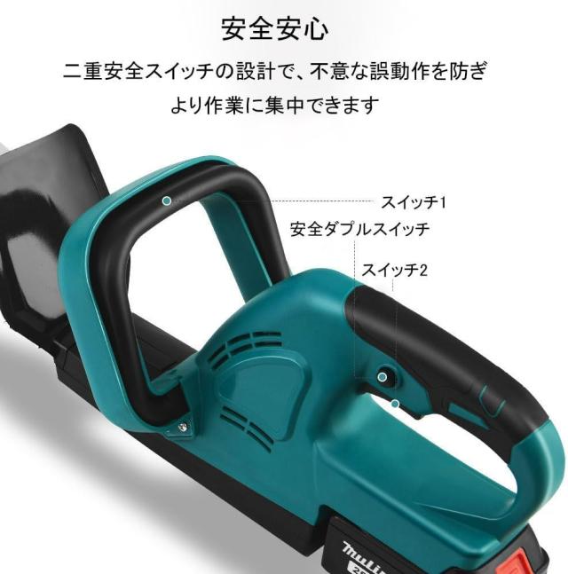 【握りやすいハンドル形状&ハイパワー&高作業率】しっかり持てるU字型ハンドル。手にフィットし、腕の負担を軽減でき、作業はとても快適です。純銅製高出力・高耐久モーターが強いパワーを提供し、最大ストローク数5050min-1 を実現。お庭、茶畑、公園、低木での剪定作業などに適用でき、最大切断径:直径約15mmです。