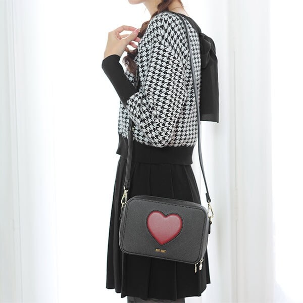 ハートが目を引く、スクエア型のショルダーバッグ。