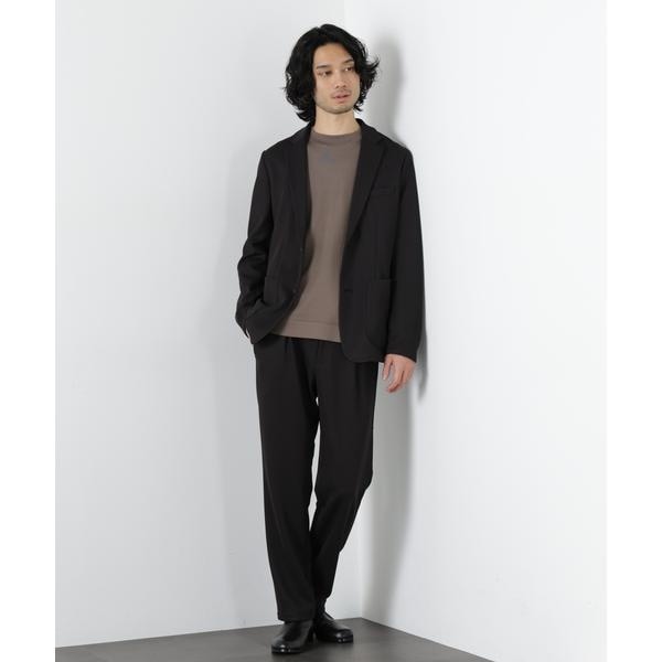 軽量なカノコ素材と薄手のストレッチ素材をボンディング加工で組み合わせた、立体感とハリ感が特徴のセットアップ。柔らかな着心地ながらシルエットを美しく保ち、長時間の着用でもストレスを感じにくいのがポイント。