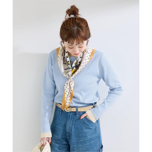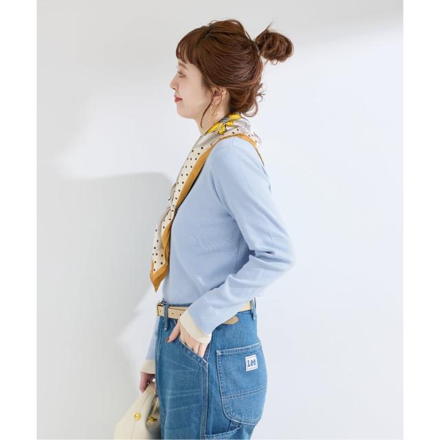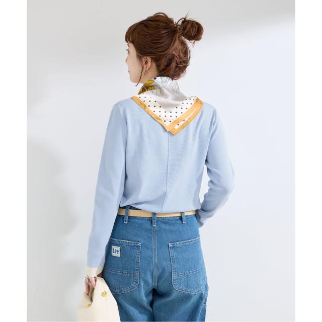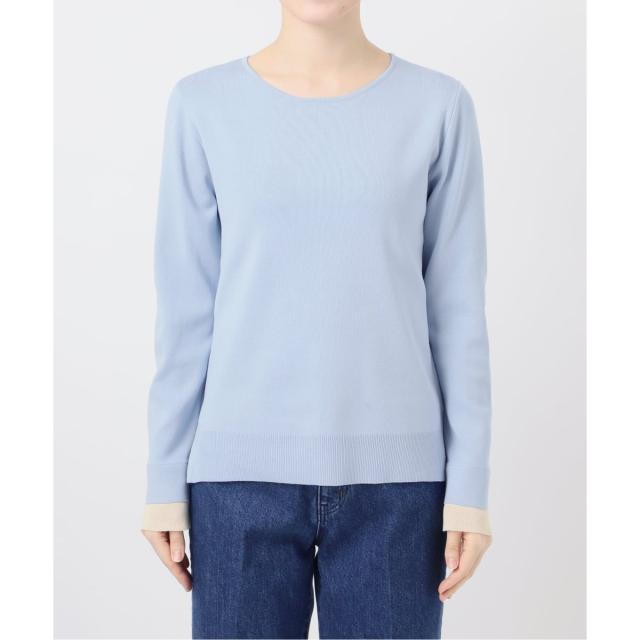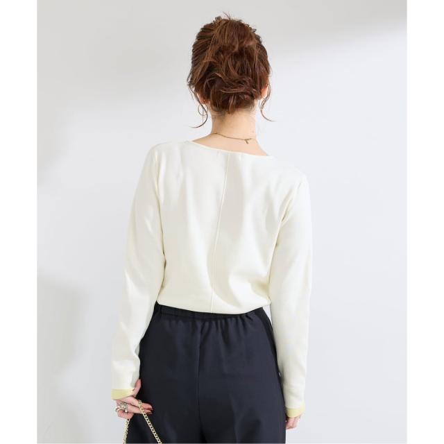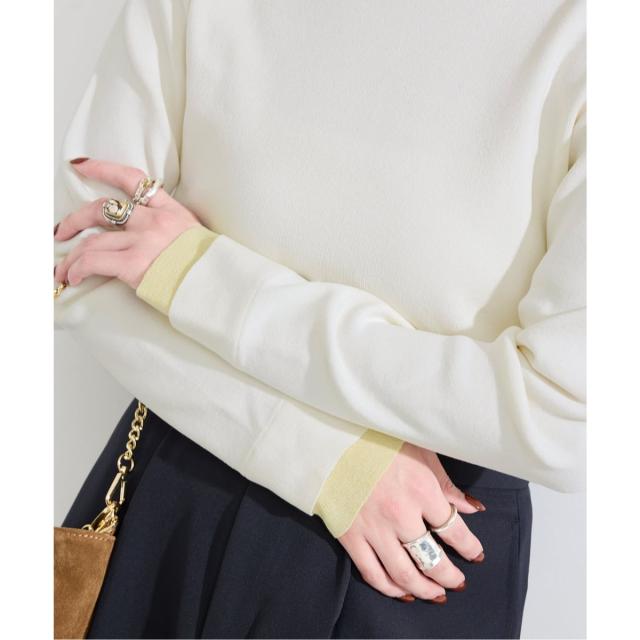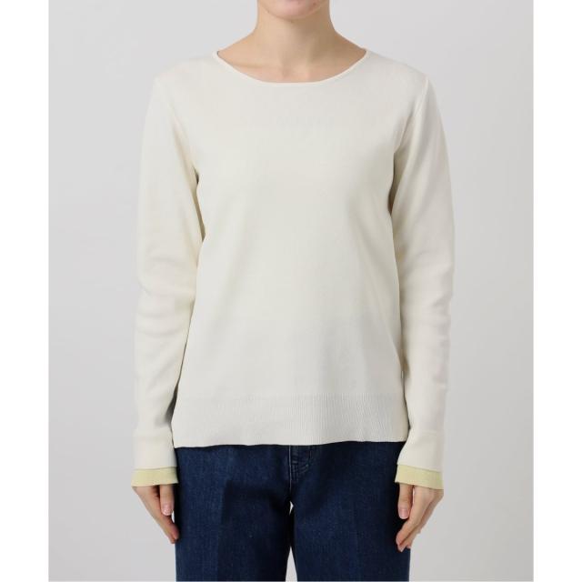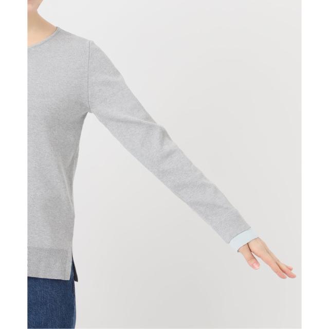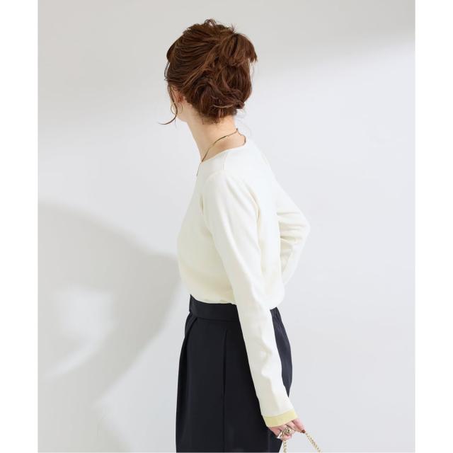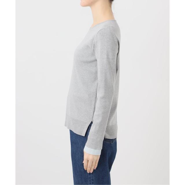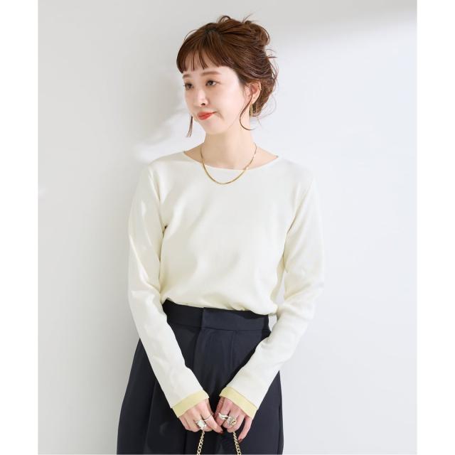 春夏に向けて程よくドライタッチな風合いが特徴です。衿ぐりは開きすぎないボートネックにし、袖口は今年らしく重ね着して見える配色使いにしています。