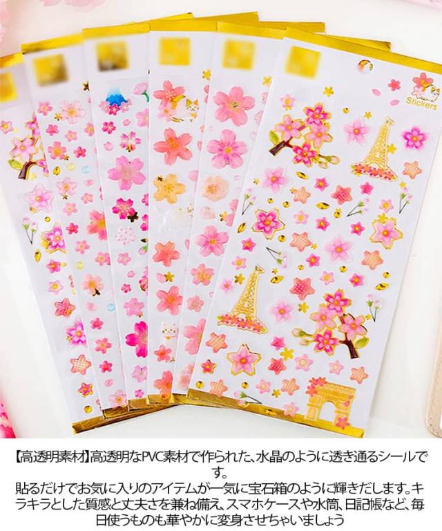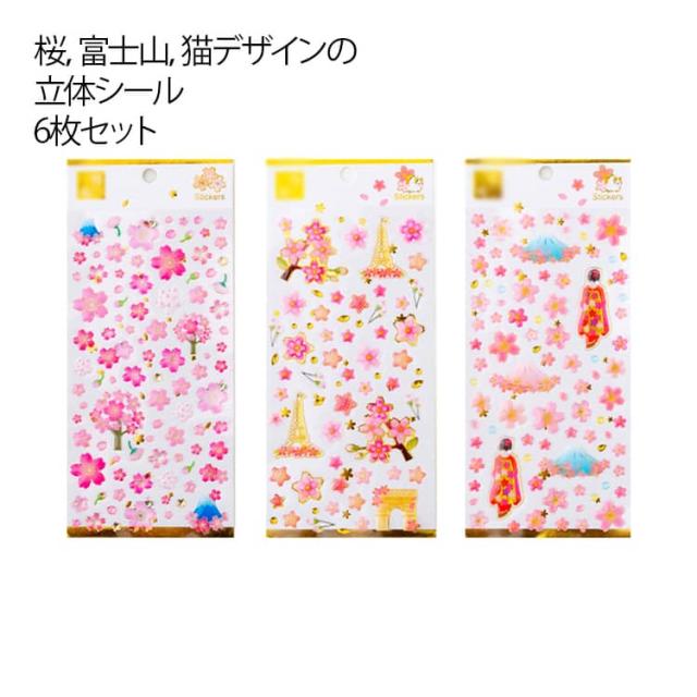 6枚セット 桜 ドロップシール 女の子 富士山 さくら ぷっくりシール 透明 かわいい 3Dシール ぷくぷくシール シール帳 交換 猫 立体 シール 宝石シール 花 立体シール デコ ボンボン デコシール スマホケース 6枚セット ボンドロ シール ステッカー おはじきシール