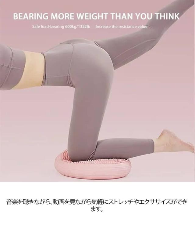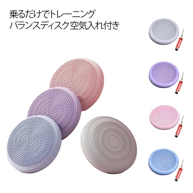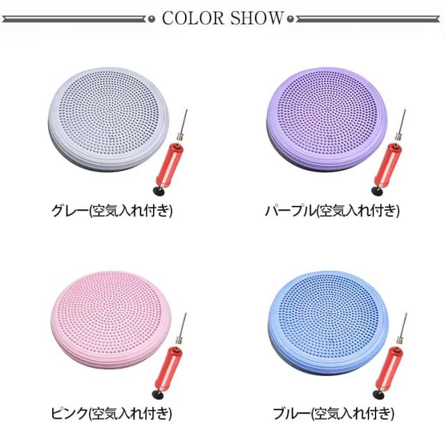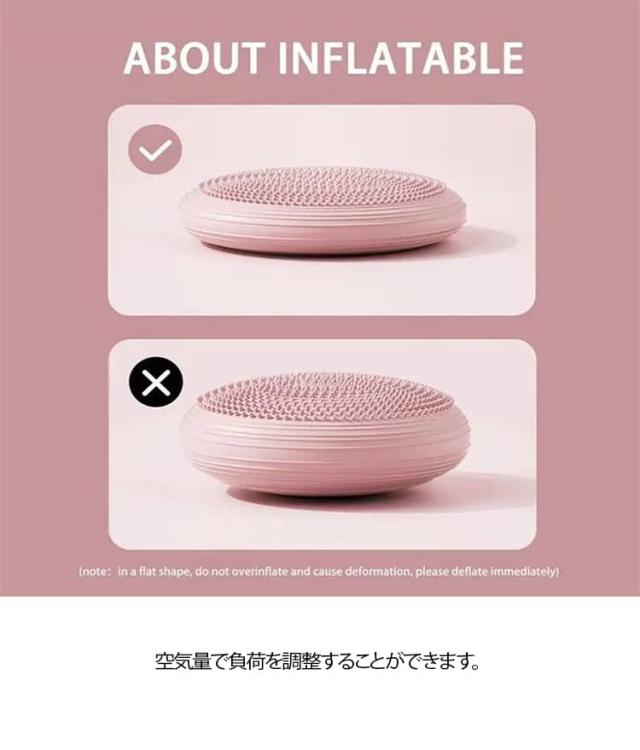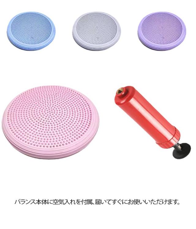| 体幹や腹筋 、インナーマッスルを鍛えるのに効果的なこのバランスディスク! 音楽を聴きながら、動画を見ながら気軽にストレッチやエクササイズができます。 空気量で負荷を調整することができます。 バランス本体に空気入れを付属、届いてすぐにお使いいただけます。 | |