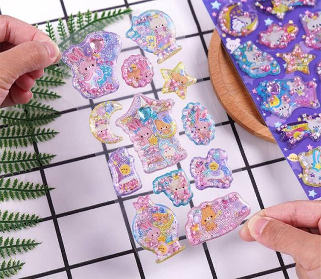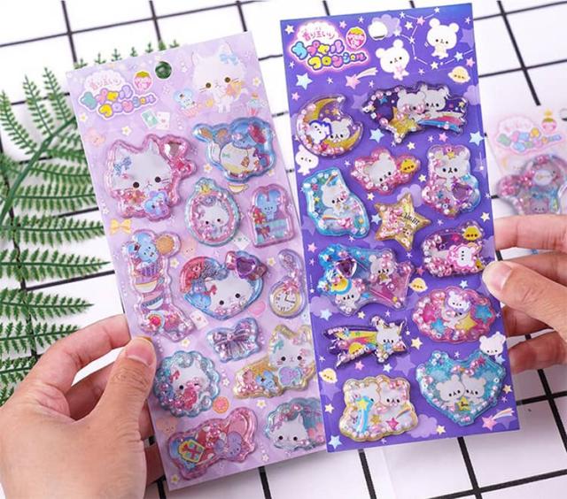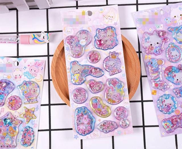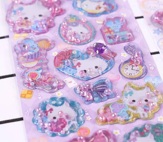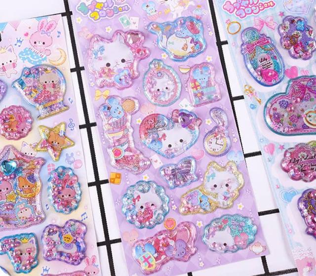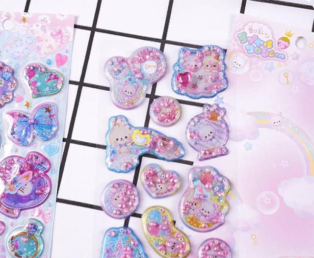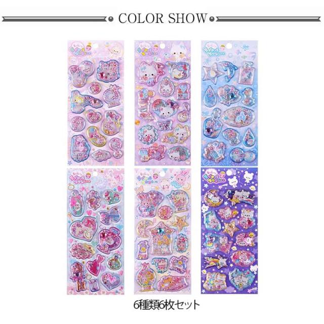 香り付き 【6枚セット】 ぷくぷく 水入り 3D デコレーション 精巧な柄 ウォーター 立体 ぷっくり 【6枚セット】 手帳用装飾 DIY 個性的 かわいい 可愛い クリスマス ギフト 誕生日