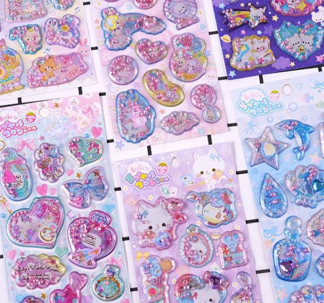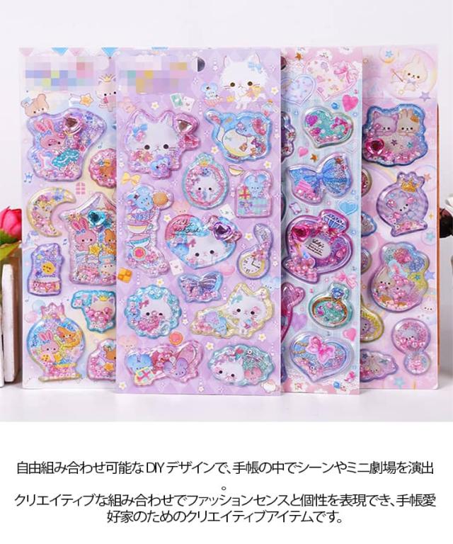 | 【ぷっくり可愛い3D立体の水】 【手帳・DIYデコ用 6枚セット】 内部にキラキラのラメとパール入り、揺らすとラメがふわっと流れる“ゆらゆら水”タイプ。 自由組み合わせ可能な DIY デザインで、手帳の中でシーンやミニ劇場を演出。クリエイティブな組み合わせでファッションセンスと個性を表現でき、手帳愛好家のためのクリエイティブアイテムです。 多彩な可愛いデザインを揃えた注水式は、誕生日や友達へのプレゼントに最適。クリエイティブなが、手帳装飾のサプライズになります。 | |