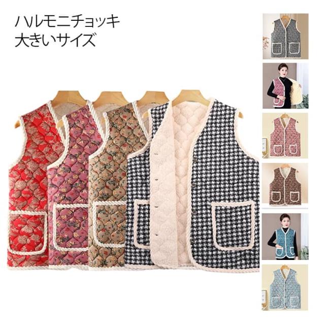 | ハルモニチョッキ 大きいサイズ 軽くてあたたかい起毛で身体の温度の維持に役立ちます スッキリVネックで首が苦しくなく気軽にはおれます 厚すぎず薄すぎないゴワつかない着心地 ミニポケットが両方についてレトロでかわいらしさのあるデザインです | |