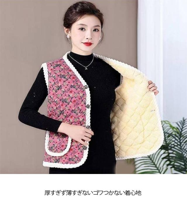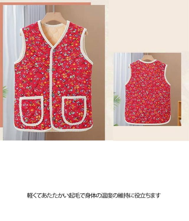 フリース キルト ハルモニチョッキ 防寒 ベスト 裏起毛 キルティング チョッキ 婦人 シニア 前開き おばあちゃん 花柄 韓国 あったか 中綿ベスト プレゼント チョッキ 秋冬 ミセス 高齢者 レディース ハルモニベスト ハルモニ あたたかい 暖かい